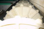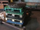 AAM warmer: replacing worn out wheels with splittable wheel pairs on a wire link belt.