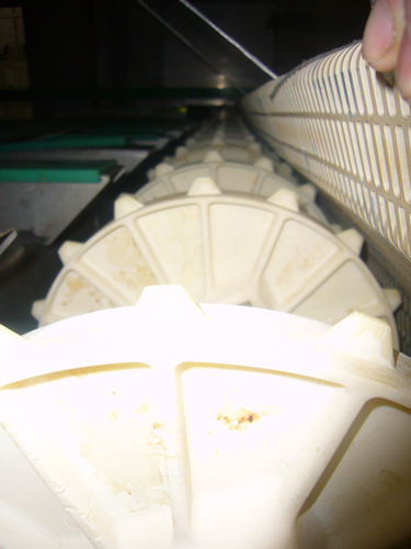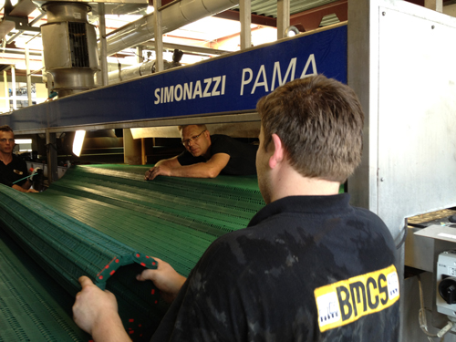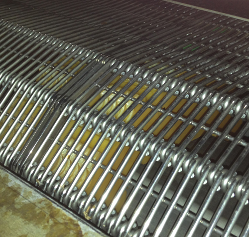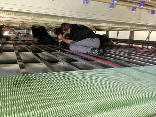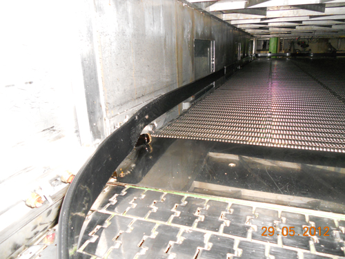 Simonazzi double-deck tunnel pasteurisator: replacing Rexnord mat by improved SRP2000 USP mat.